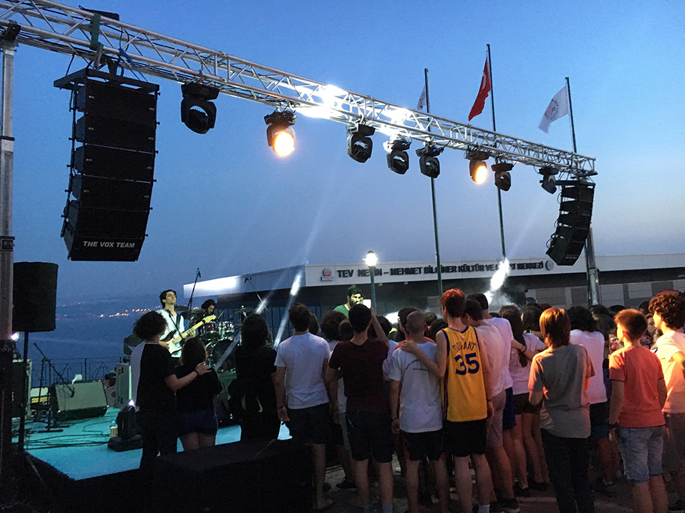Bundan yola çıkarak, ses sistemi için son teknoloji “line array” ana hoparlörlerimizi mekandaki tüm dinleyici bölgelerinde hem ses seviyesi dBA-SPL hem de frekans bazında homojen (eşit ağırlıkta) olarak sesi yayacak şekilde ve güçte konumlandırır, açılandırırız. Bu ana ses sistemi hoparlörlerinin kapsama alanı dışında kalan bölümler için gereken destek, (side fill, down fill, front fill, surround fill) dolgu hoparlörlerinden alınır ve mekan elektro-akustik olarak tamamen ses sistemi kapsamı içine alınmış olunur.